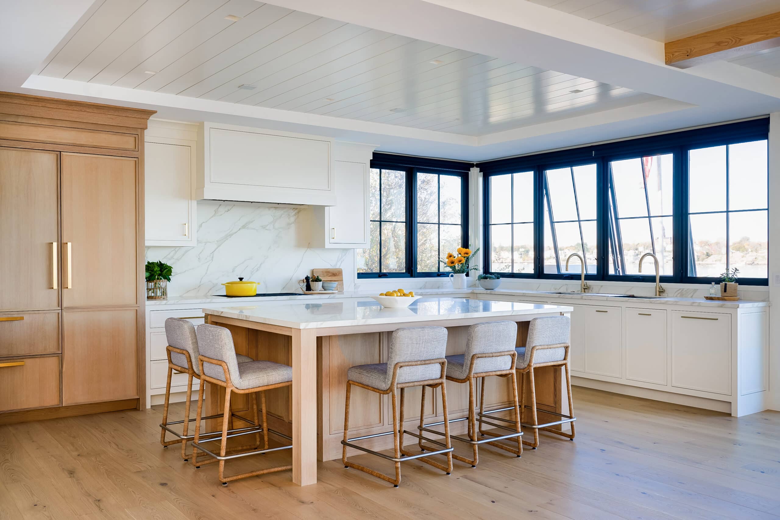 The clean lines and crisp look of this kitchen are due in part to the "micro-shaker" cabinetry profile. This unique look gives the cabinets a classic look with a subtly sleek modern feel.