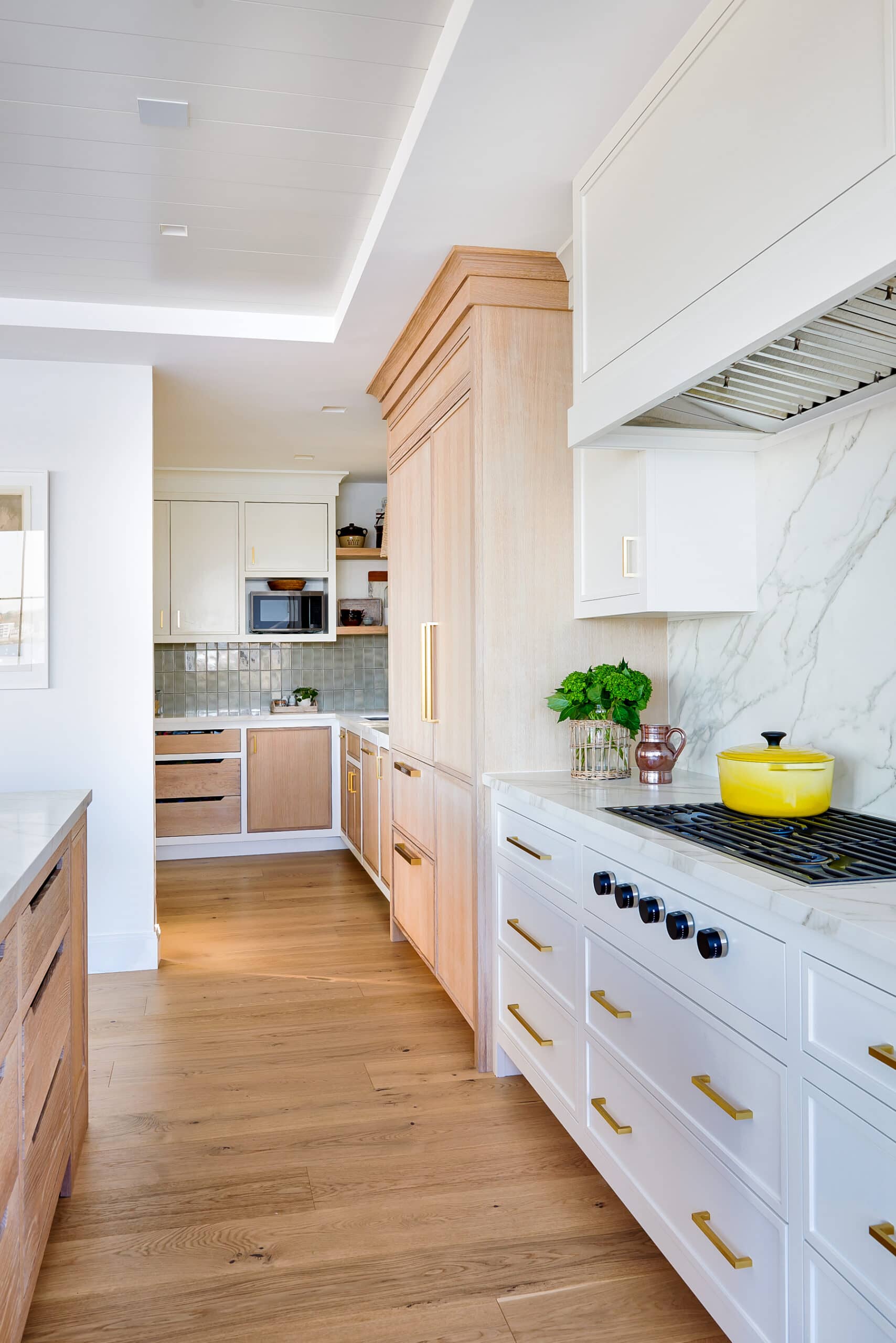 • Cabinetry: Traditional inset single face frame cabinetry. Micro shaker profile. Painted Maple with Rift White Oak interiors