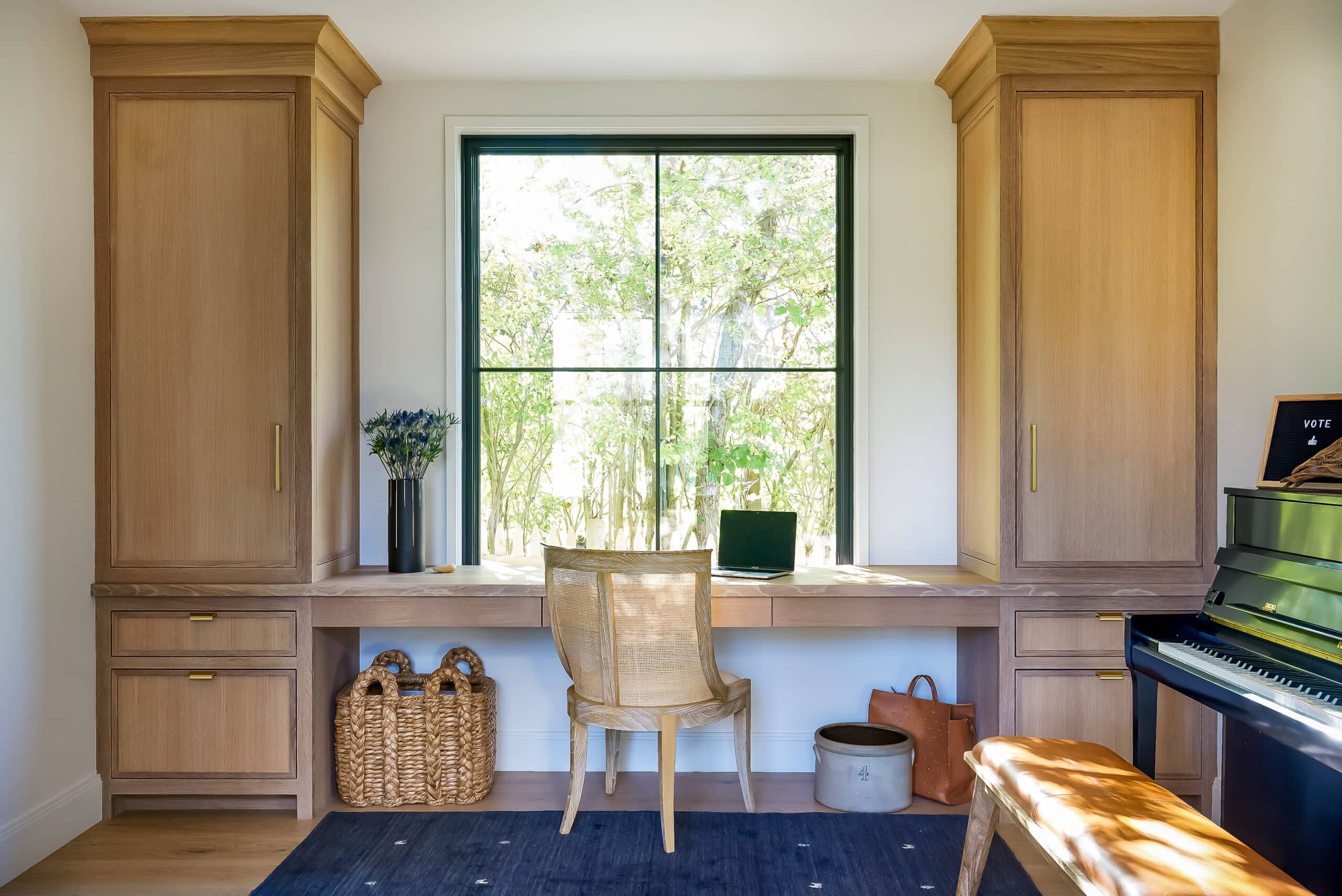 • Home office: Rift white oak cabinetry and desk with micrp shaker profile