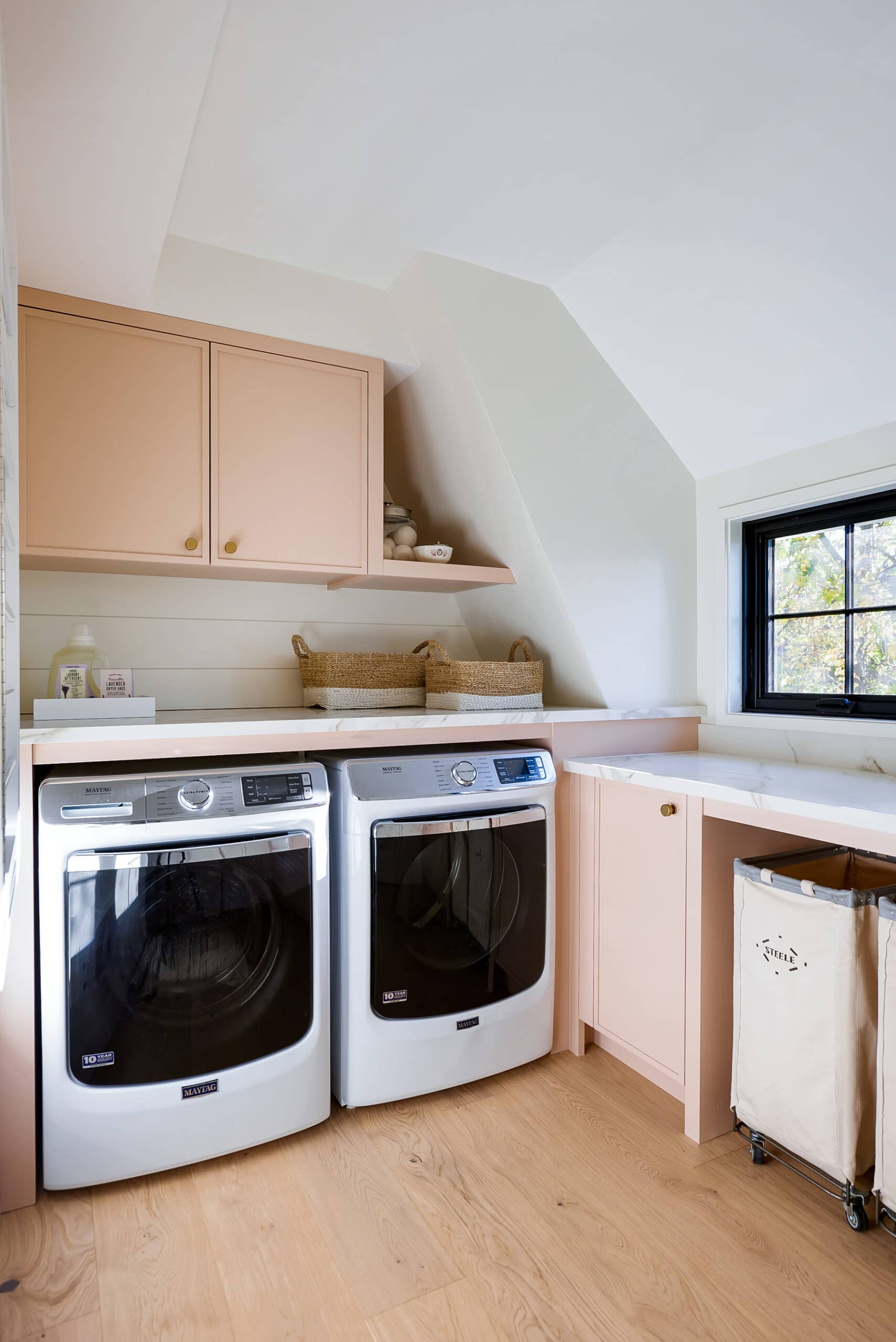 • Laundry room: Traditional painted inset single face frame cabinetry with micro shaker profile.